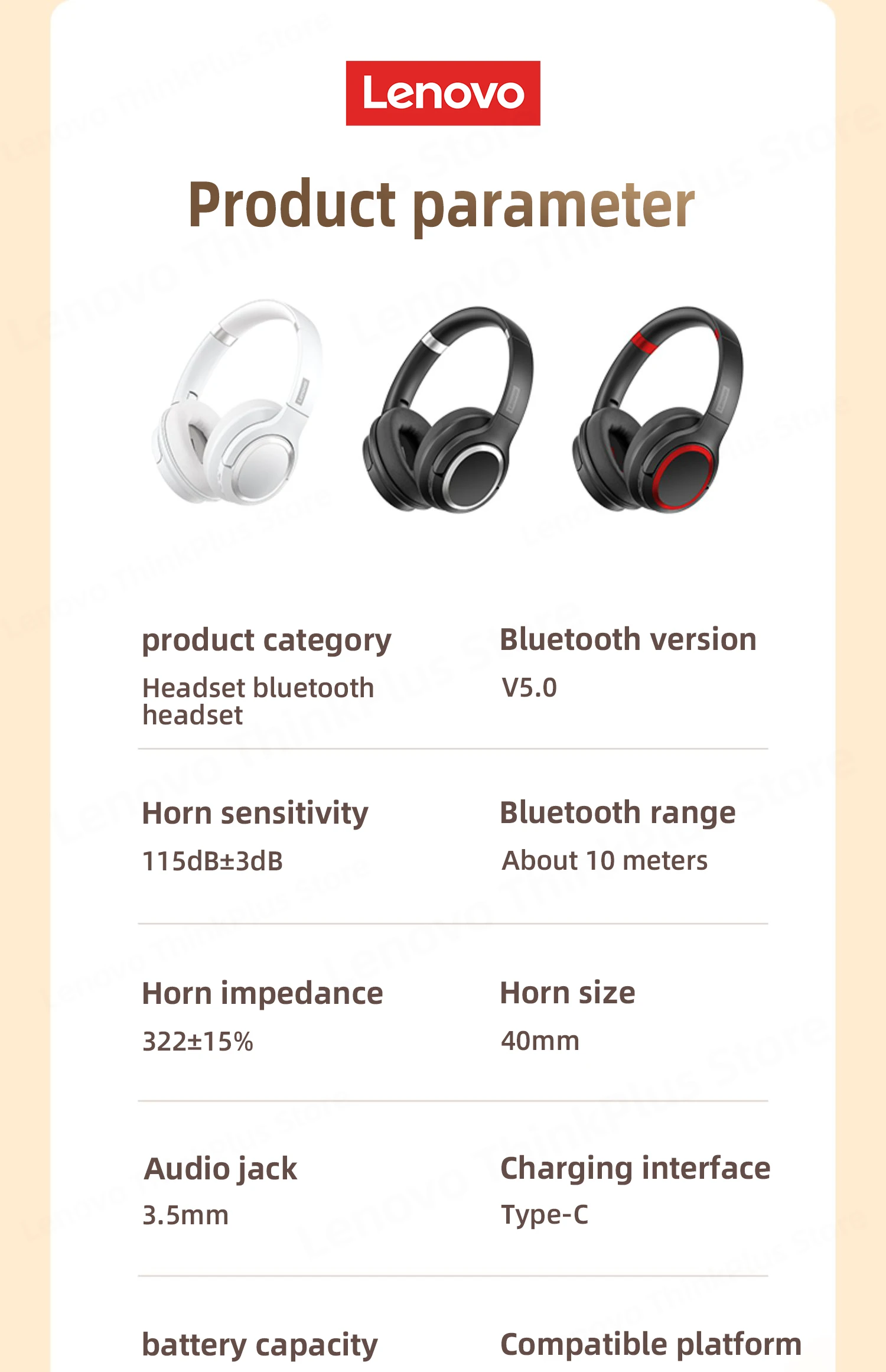 Original Lenovo TH40 Sports Headphones Stereo Wireless Bluetooth Earphones HIFI Sound Gaming Headset